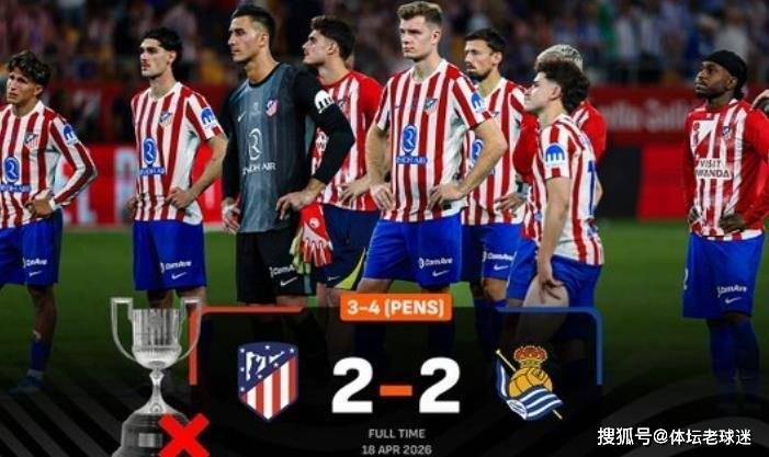 北京时间4月19日清晨,2025/26赛季西班牙国王杯决赛落下帷幕。马德里竞技与皇家社会鏖战120分钟,2比2难分高下。点球大战中,瑟洛特、阿尔瓦雷斯失点,最终以点球3比4、总比分5比6饮恨败北。皇家社会队史第四次捧起国王杯冠军,而马竞则是延续近11年来,只有一座西甲冠军奖杯的尴尬。